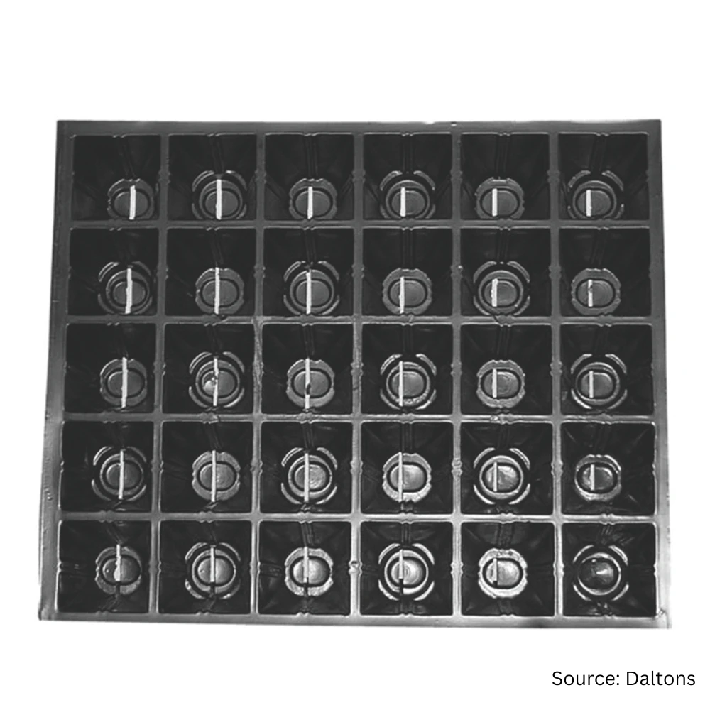 Made from recycled plastic to be high impact and, if taken care of, will last many years. Made to fit within our dipping trays this tray provides for 30 seedlings to be grown in individual cells. Suitable for raising seedlings or propagating cuttings. Best suited for the growth of vegetable seedlings such as cucurbits or solanaceous species or growing on pricked out seedlings. When filling with seed raising mix be sure to gently tap trays to ensure mix fills right to the bottom of each cell.