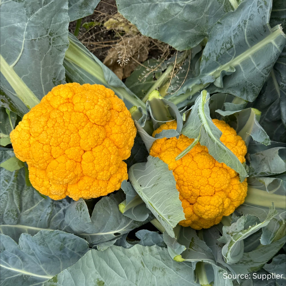 A vibrant hybrid featuring intense, deep?orange curds that remain vivid after cooking – thanks to water?insoluble carotenoid pigments. The open plant habit allows light to enhance the colour uniformity of curds producing firm, rounded heads. Suited to mid?spring through mid?autumn harvests.