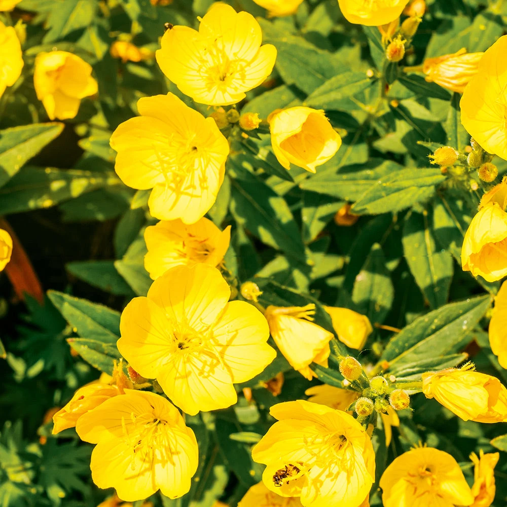 A biennial, in the first year many leaves are produced, but in the second year a stem rises and bears large delicately fragrant, yellow flowers. The flowers usually open during early evening, hence the name Evening Primrose.