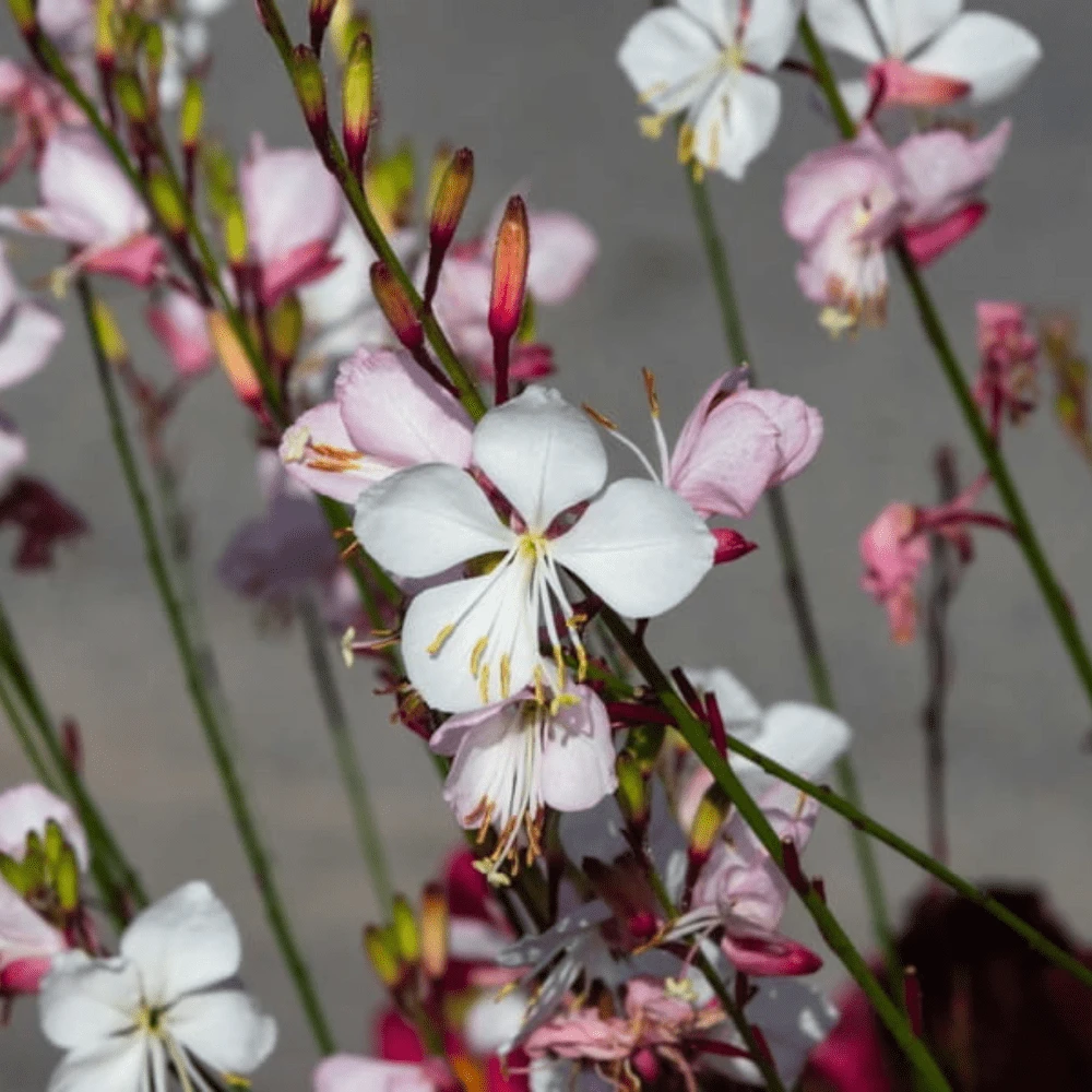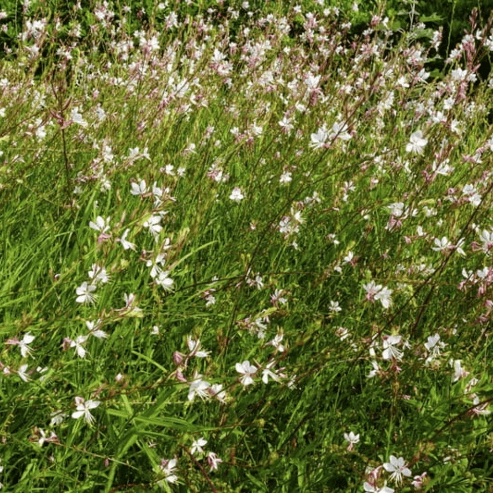 A graceful perennial with white blossoms tinged with blush-pink resembling butterfly wings, hence its common name of Whirling Butterflies. Its airy, delicate appearance and long blooming season make it a favourite for borders and as a cut flower. Attractive to butterflies.