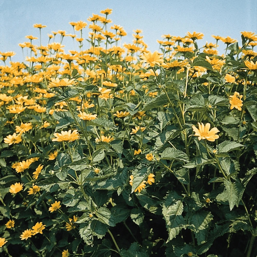 A long-flowering perennial for cutting and striking as mass plantings in the border. This false sunflower has daisy-like, golden-yellow flowers on sturdy, branched-stems. Easy to grow and heat/drought tolerant, lift and divide clumps every 3-4 years.
