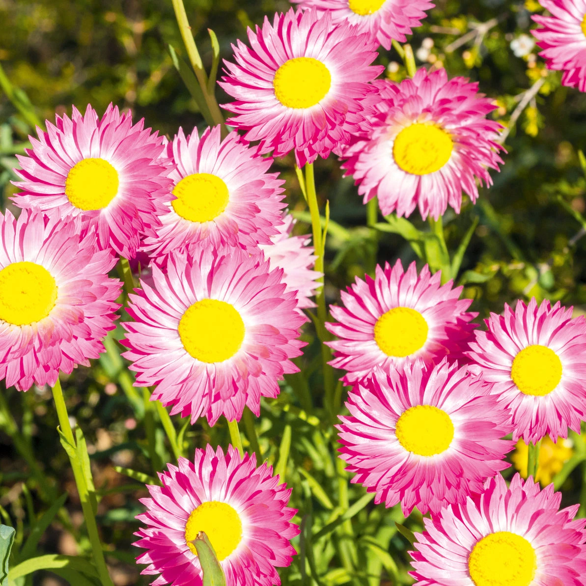 Easy care, everlasting flower in pale-pink with yellow or dark centers. The bushy branches are best picked with 50% of flowers open and are great as a fresh cut flower or hung upside down to dry. Sow early in the spring for good bud formation.