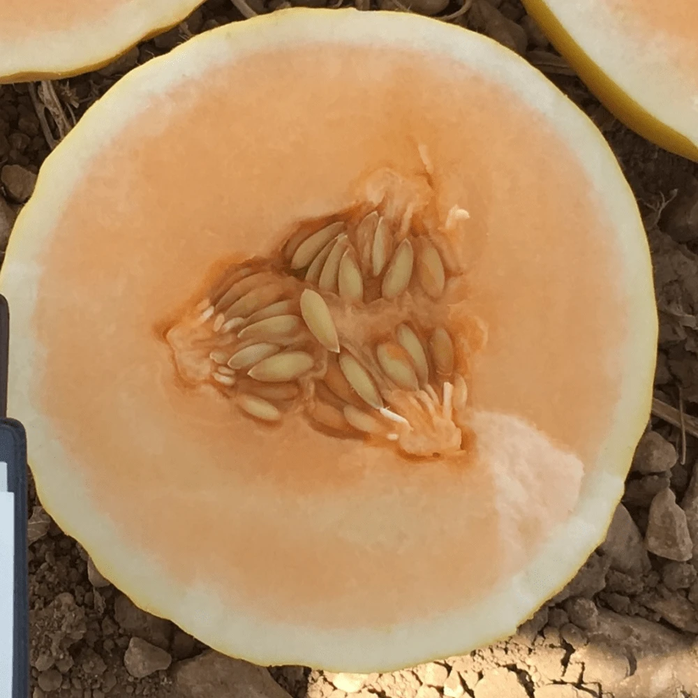 Sweet and juicy, yellow Canary melon with firm orange flesh. When ripe, the skin colour changes to deep-yellow and with a light tug the fruit will separate from the vine. Grown in humus rich free draining soil, the vigorous and productive vines should yield 3-4, 1-2kg fruit.