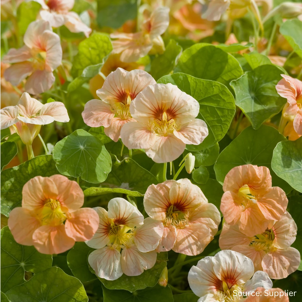 Ruffled flowers in pastel shades with darker leaves that make an attractive companion plant in the vege garden or perfect for containers and hanging baskets due to the compact plant habit. Attracts pollinators and repels pests with all parts edible. Fast growing and easy to grow.