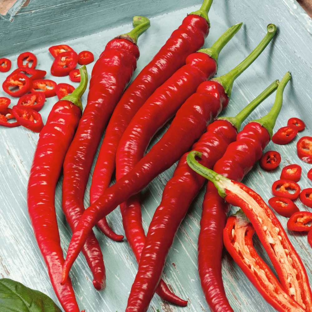 The most widely used type of chilli within New Zealand, a cayenne chilli still provides a good kick of heat without the overwhelming burn. Can be used fresh or dried. Easy to cultivate and a prolific yielder. The approximately 12cm long fruit will ripen from green to red at maturity.