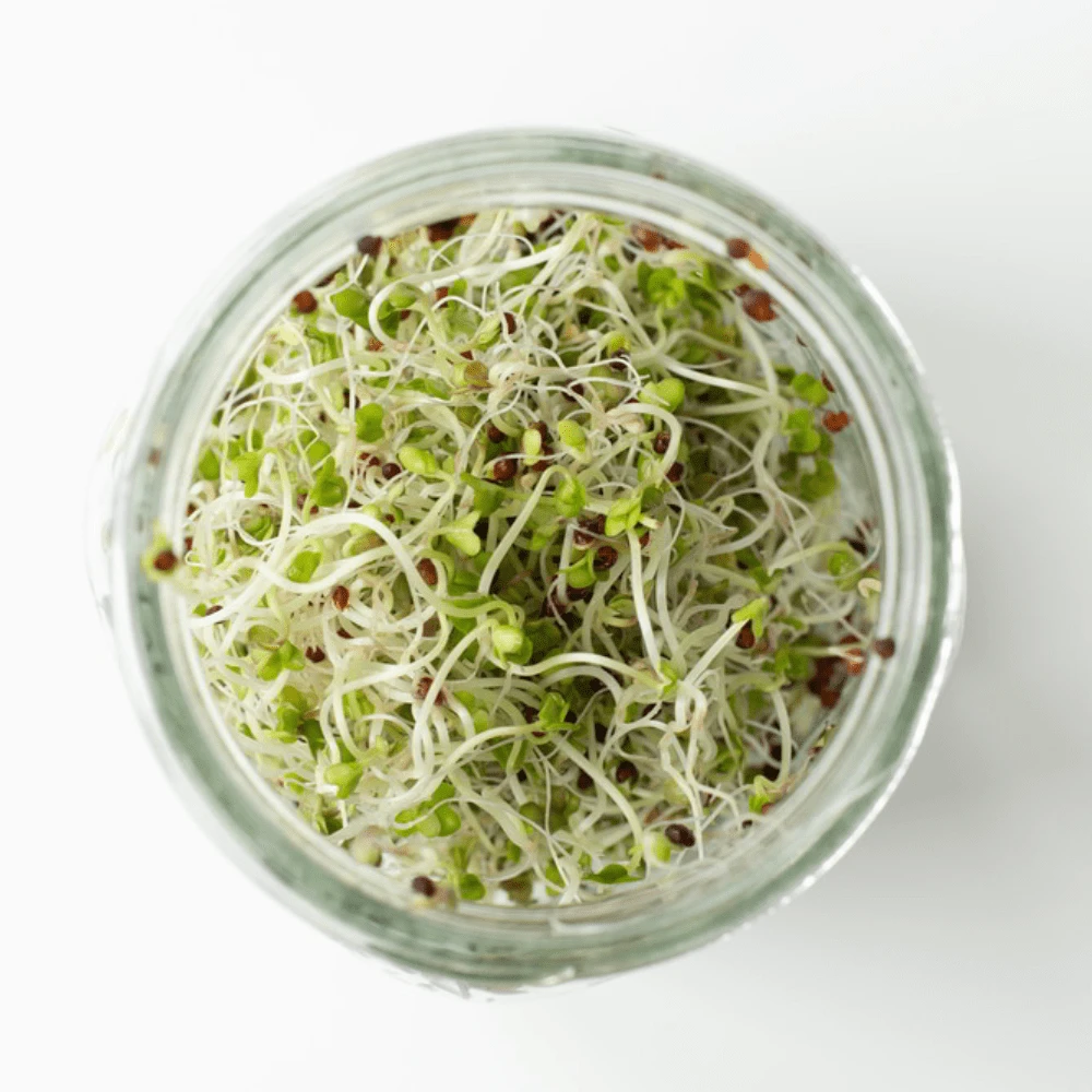 Our most popular sprout, green broccoli is a nutritional powerhouse! A great source of protein, fibre, vitamins, minerals, and phytochemicals. A serving (85g) provides high amounts of vitamin C, which is known for its antioxidant and immune-boosting properties. In addition, they contain a phytochemical called sulforaphane. Sulforaphane is a compound with powerful anti-cancer properties. In fact, this is why broccoli sprouts have long been studied for their anti-cancer effects. Other benefits of sulforaphane include; may support mental and brain health, may improve gut, joint and heart health and regulate blood sugars. Broccoli sprouts have 50 times the benefits and nutrition of mature broccoli.