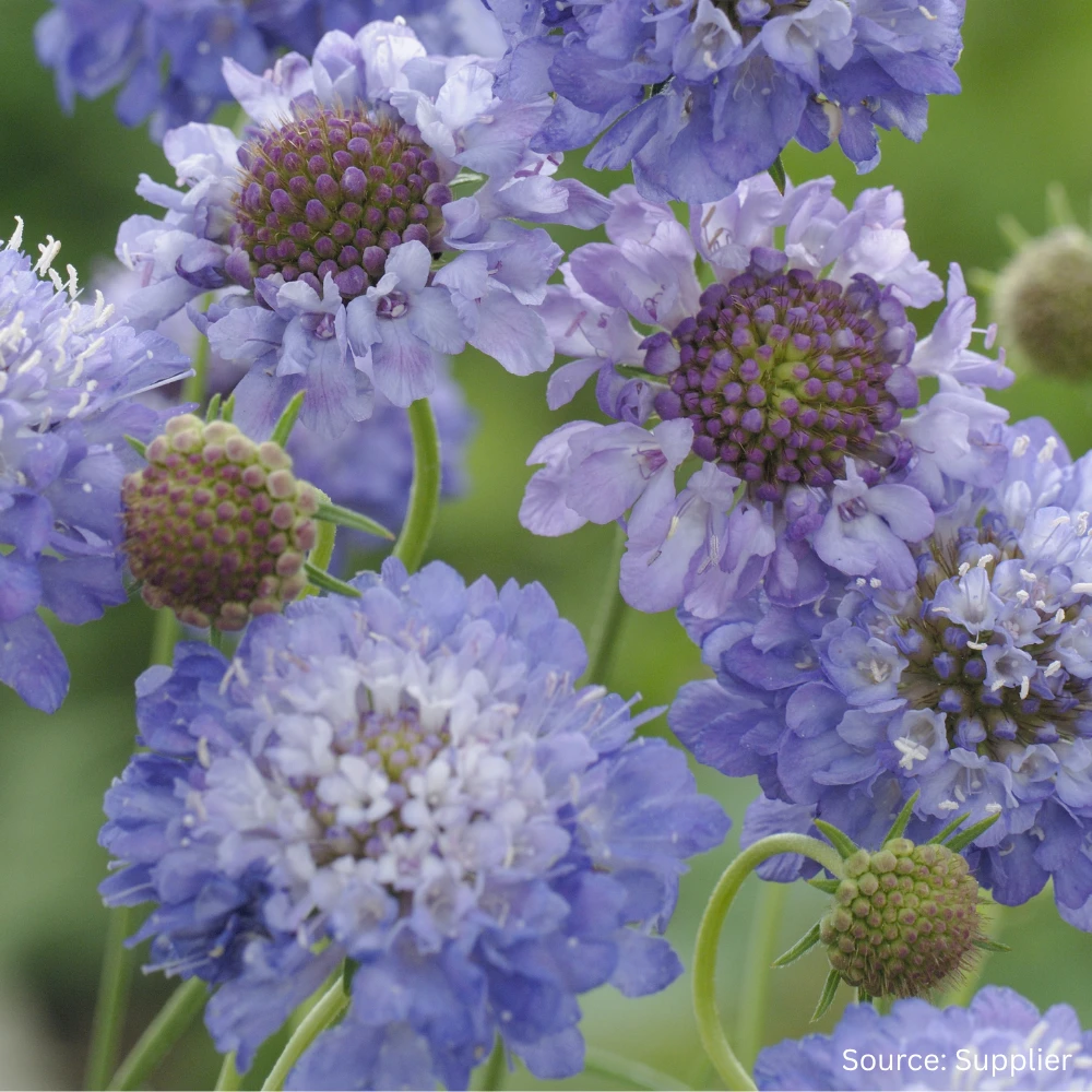 Classic mid-blue, long-stemmed scabiosa, pretty in the border or picked for a bouquet. Easy to grow, a prolific producer of blooms which can be cut for fresh or dried floral arrangements. Harvest when flowers are still in bud or about to open. Tall growing, requires support.