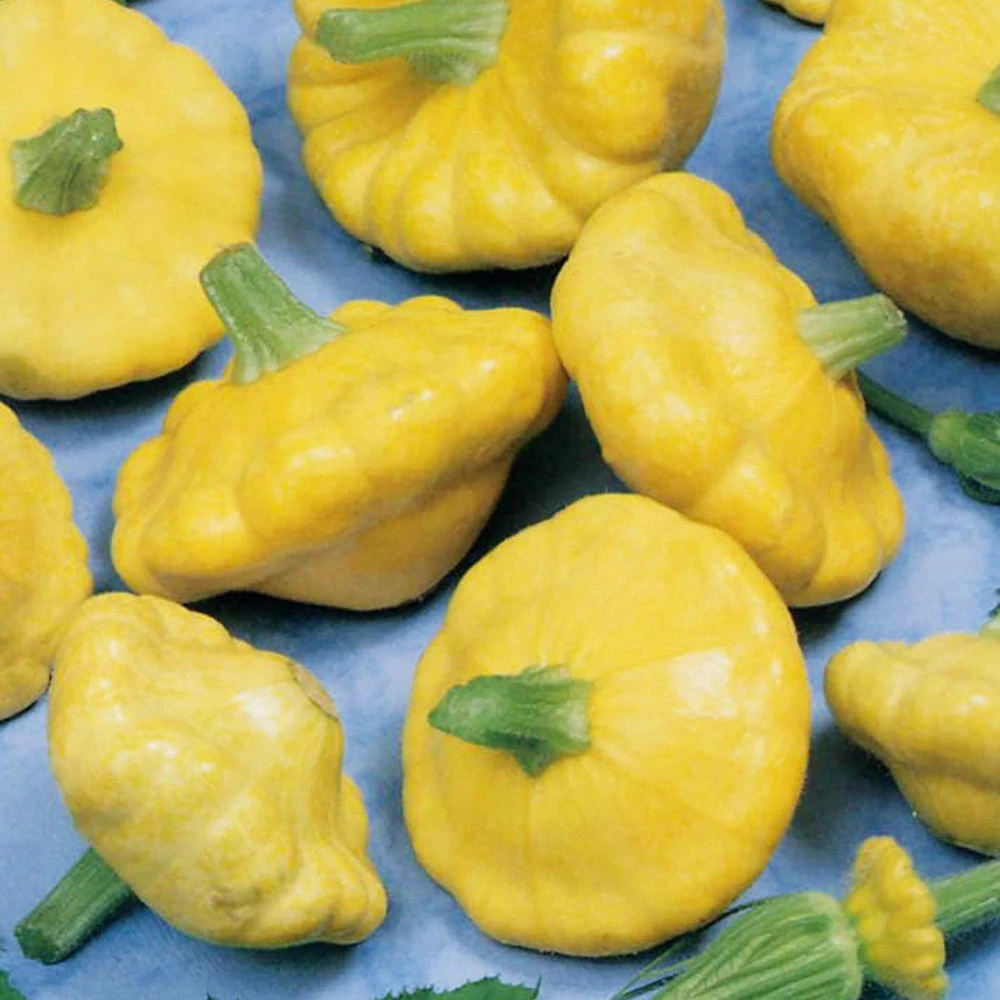 Bright-yellow scalloped summer squash with tender, nutty-tasting flesh. A bush-like plant similar to zucchini that has an open habit and produces prolific numbers of fruit. Harvest when fruit are still small 5-7.5cm in size for best eating quality. Good tolerance to powdery mildew.