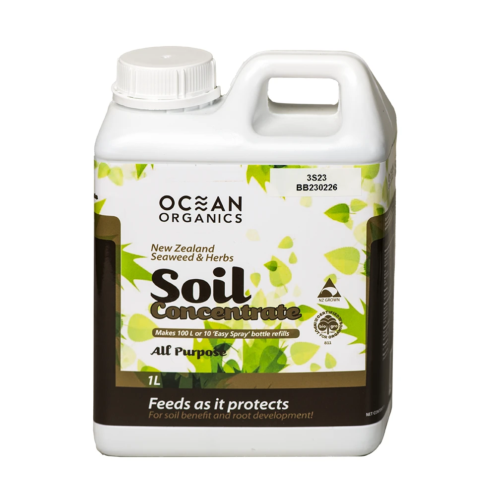 All life begins with the soil, so make sure you build from the soil up. Seaweed stimulates the soil’s beneficial microbial activity and provides valuable nutrients made available for plants to absorb. Use a weak solution on all new plantings to prevent transplant shock. During main growth spurts, feed a weak solution often. For summer pot plants, feed every week, as their nutrients are quickly leached out due to frequent watering. Feed around the drip lines of trees & shrubs.