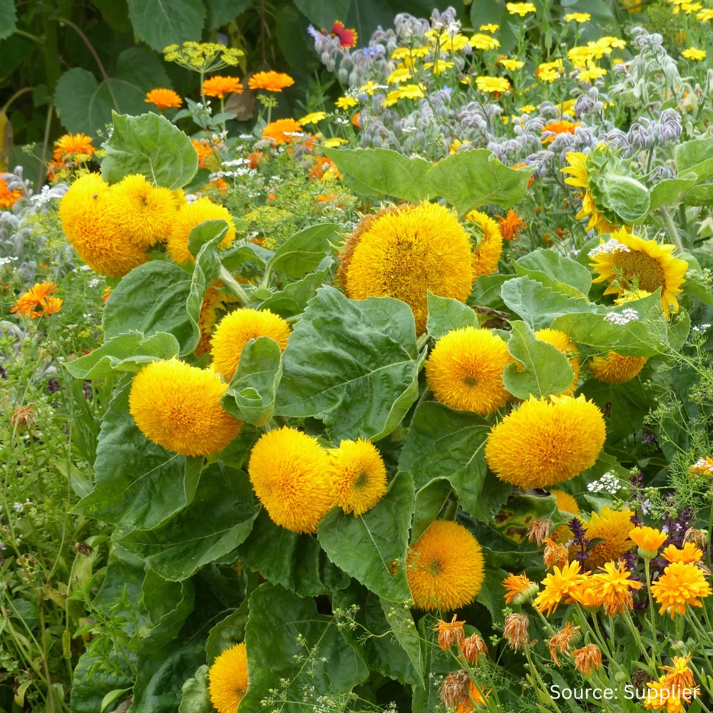 Sunflower ‘Teddy Bear’ is easy to grow from seed, even for beginner gardeners. Plants will flower approximately 60–75 days after sowing. Space seedlings 30 cm apart. Once established, sunflowers are drought-tolerant, needing only occasional watering.