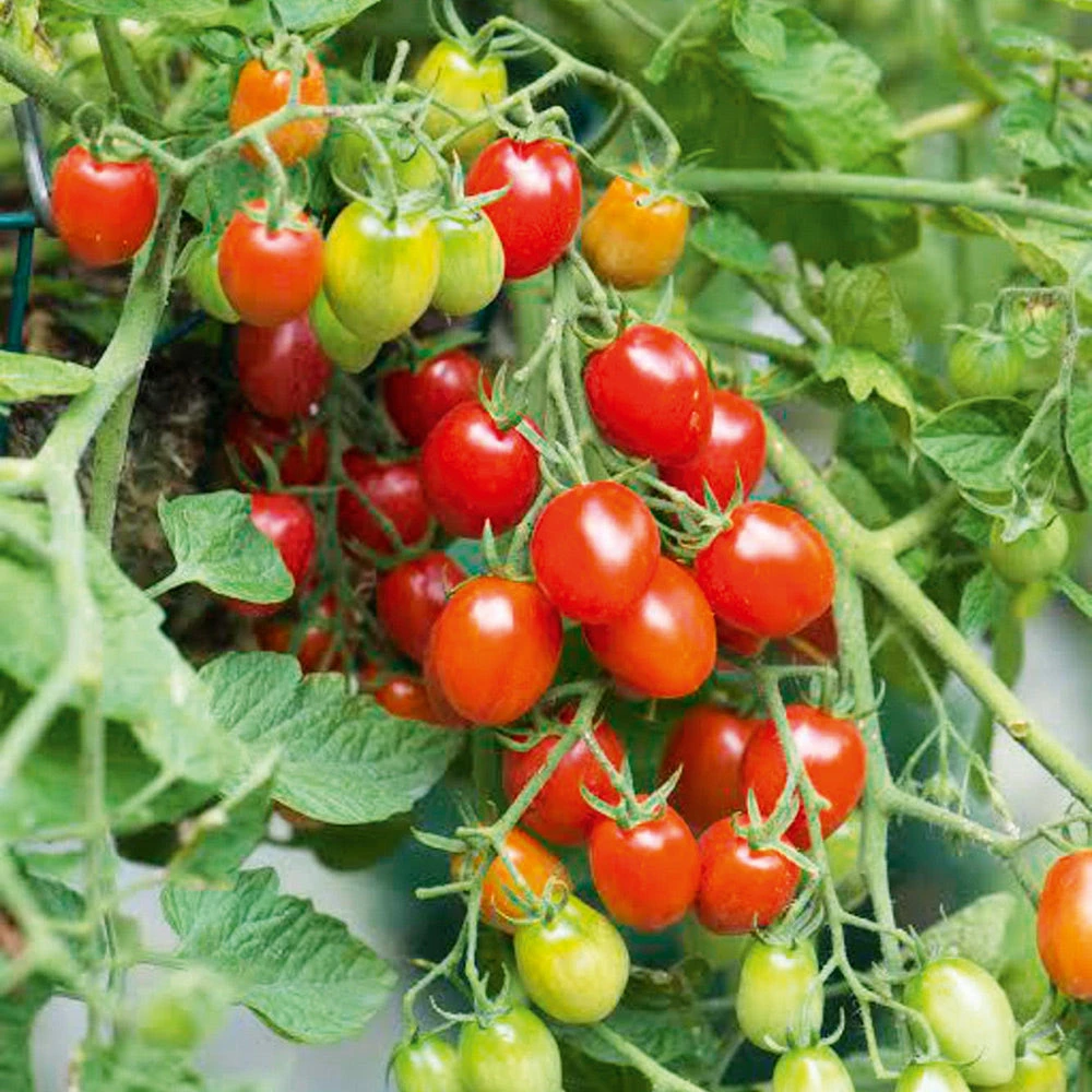 Cherry tomato. Prolific super-sweet, red grape tomato that can be grown in large containers or hanging baskets. High yielding plants produce up to 6kg of 14g crack-tolerant fruit in clusters towards the outside of the plant. Tolerant to late blight, so suitable for sowing a few seeds later to extend your harvest.