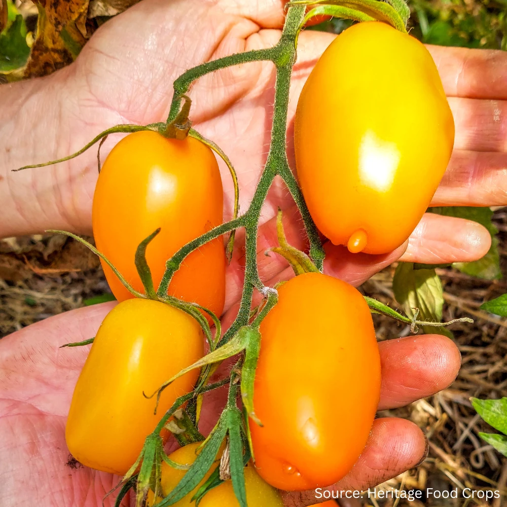 Heritage Food Crops (HFC) believe that these varieties are strains of the original ‘golden’ tomatoes (named “Pomodoro” in Italy) that were introduced into Europe around 1520.