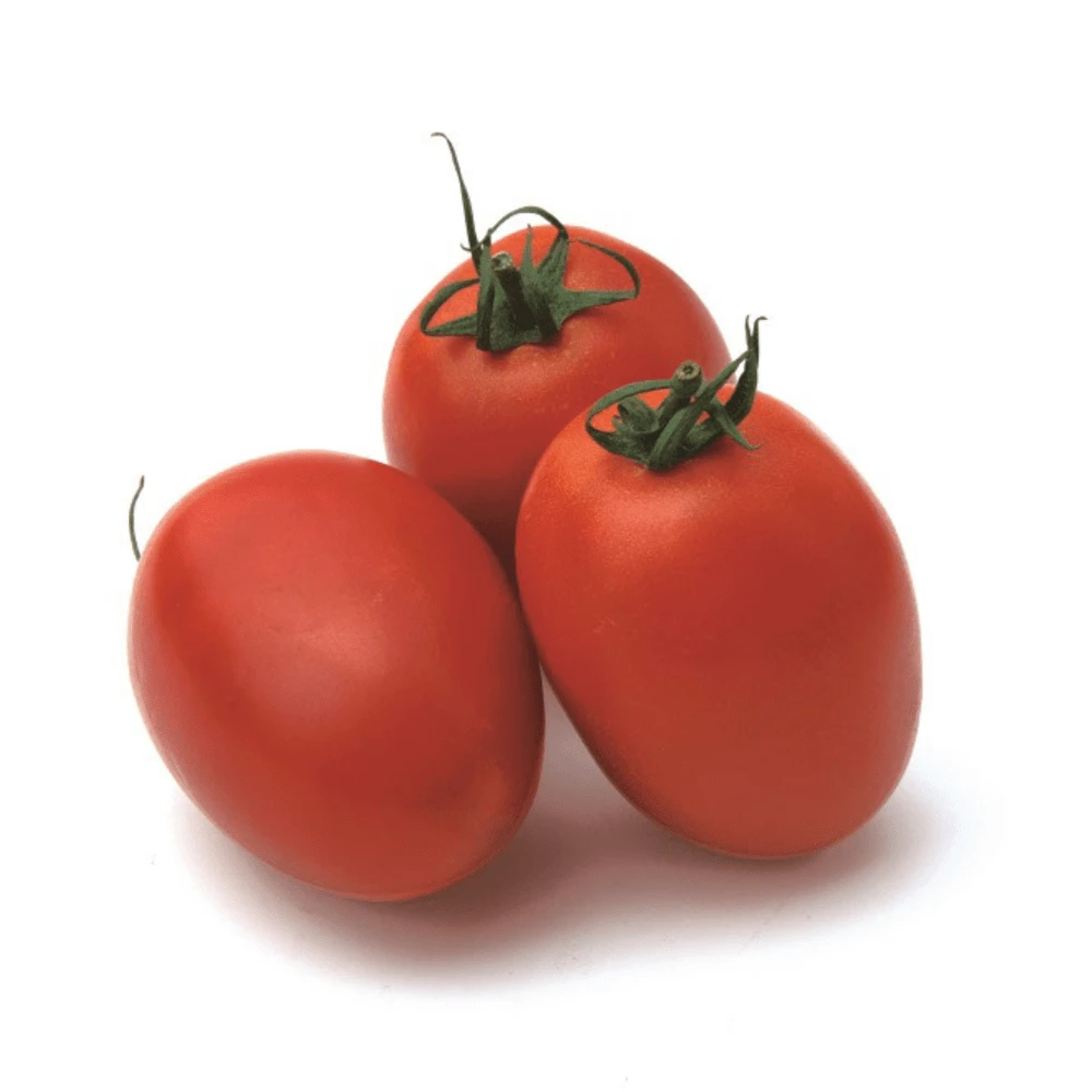 Roma tomato. A productive paste tomato that yields good numbers of 150-160g bright-red fruit with an elongated, blocky-shape. Excellent for eating fresh or processing into rich soups, sauces or pastes with its meaty texture. Very good tolerance to pests and disease. Can be left to sprawl.