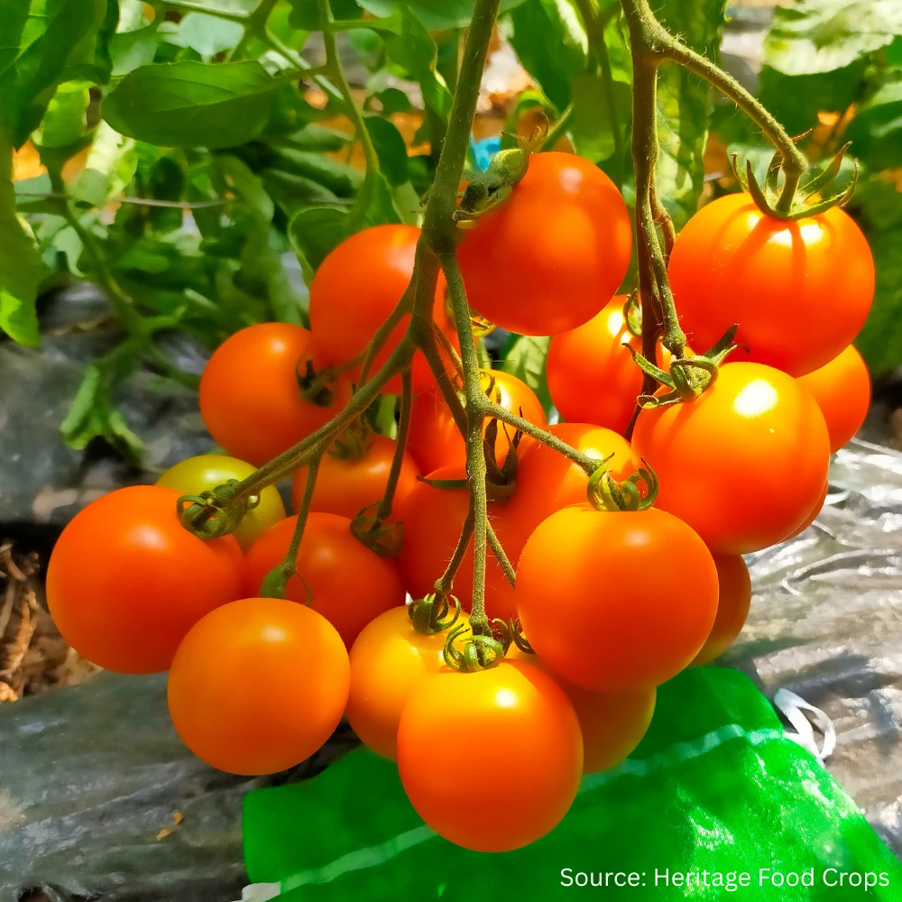 A disease resistant, highly productive heirloom variety that produces clusters of 2-inch, round, bright-orange fruit containing intense fruity flavours with a nice snappy tang. This variety tested with high levels of tetra-cis-lycopene in the 2019 year.